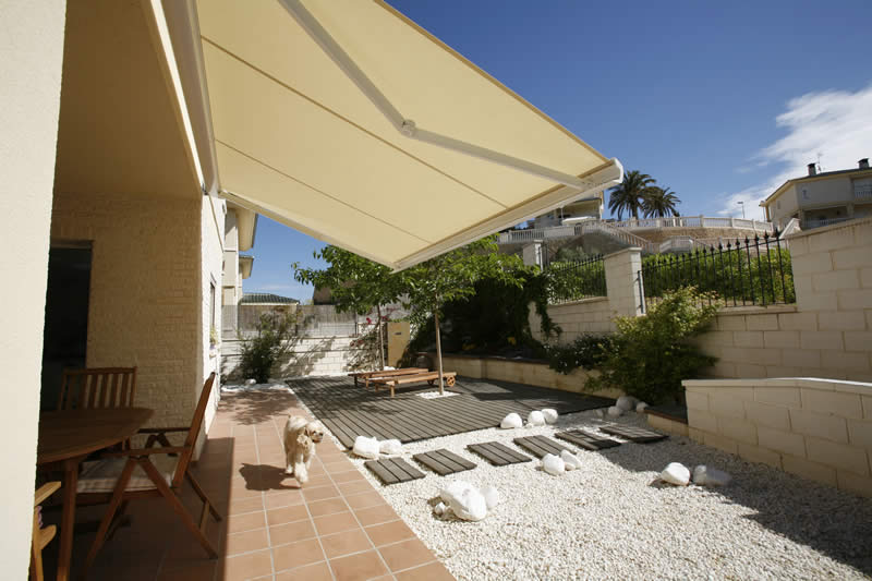 Les bras du store restaurant disparaissent complètement dans le caisson en aluminium. Grâce à ses dimensions et ce concept esthétique, il s’intègre et s’adapte parfaitement aux architectures modernes. Une multitude de coloris de laquages et de toiles sont disponibles, avec des options comme un éclairage sous les bras pour créer une atmosphere et ambiance agréable.